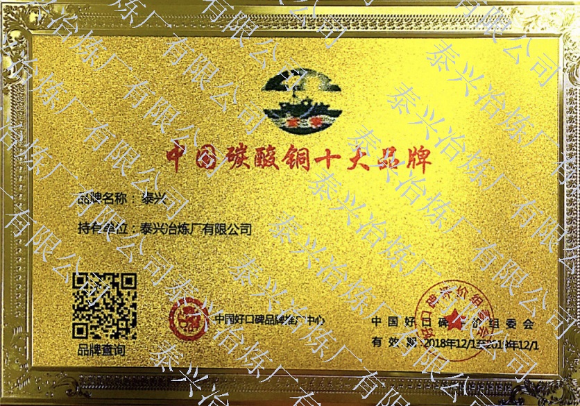 泰興冶煉廠有限公司(原泰興冶煉廠),始建于20世紀70年代初,現位于江蘇省泰興經濟開發區。歷經40年的創新驅動、穩健發展,已成長為一家專業生產堿式碳酸銅、高純電鍍氧化銅、氧化亞銅、氧化銅、無水硫酸銅、海綿銅粉及副產品聚氯化鋁(凈水劑)等系列無機鹽產品及處置不含氨的氯化銅蝕刻液(HW22)15000噸/年的“國家高新技術企業”和地方性骨干企業。公司總占地面積3.7萬平方米,建筑面積4萬平方米,注冊資本2088萬元,固定資產1.2億元,年產值約7億元。